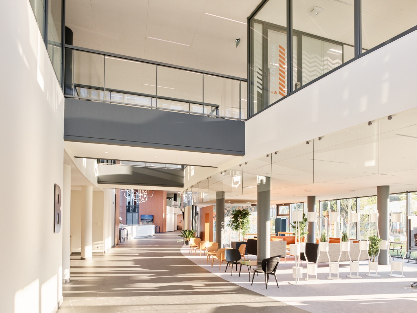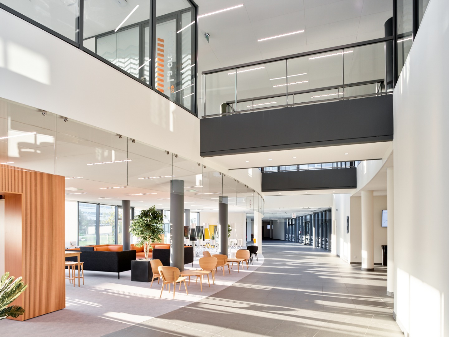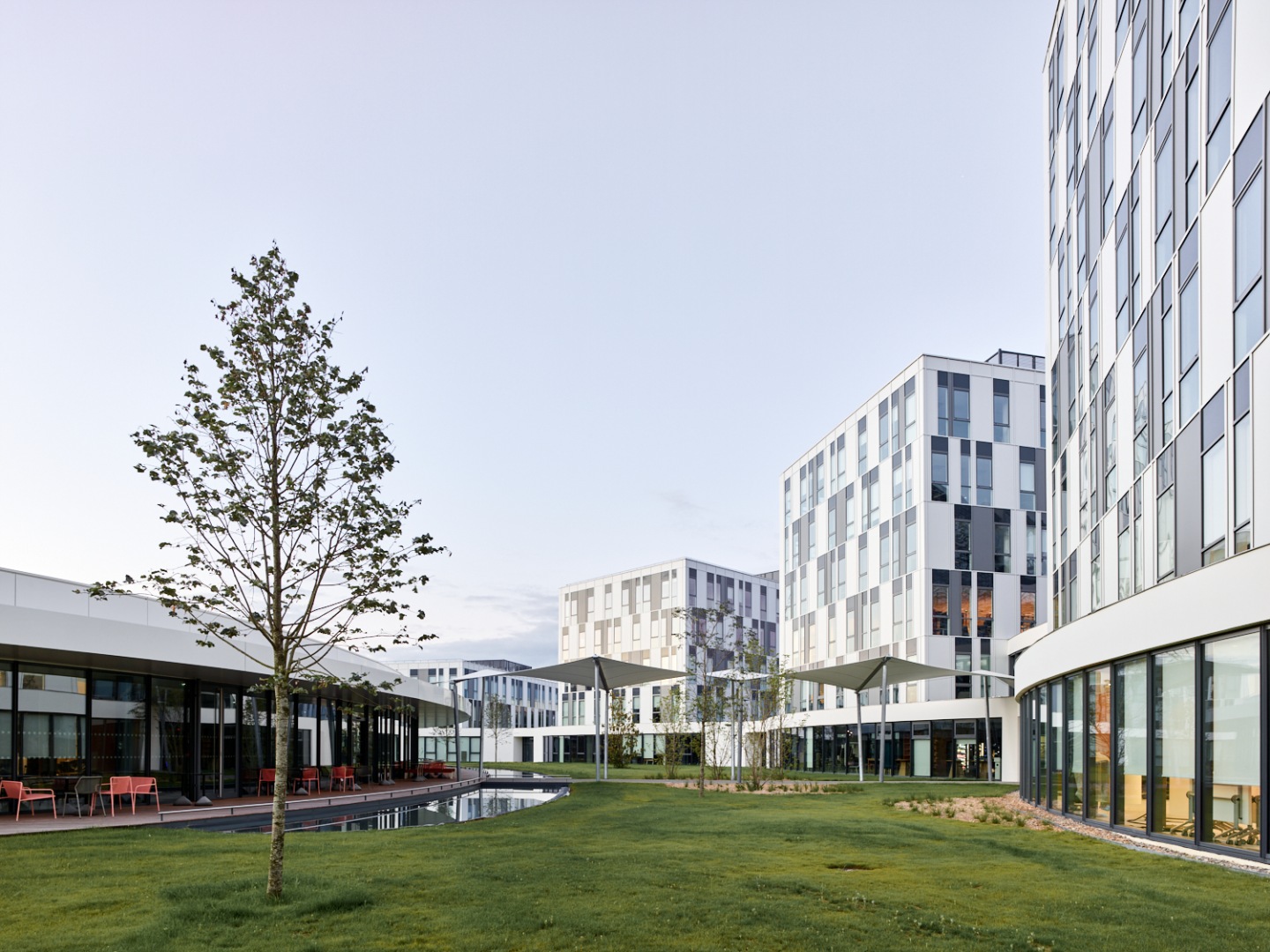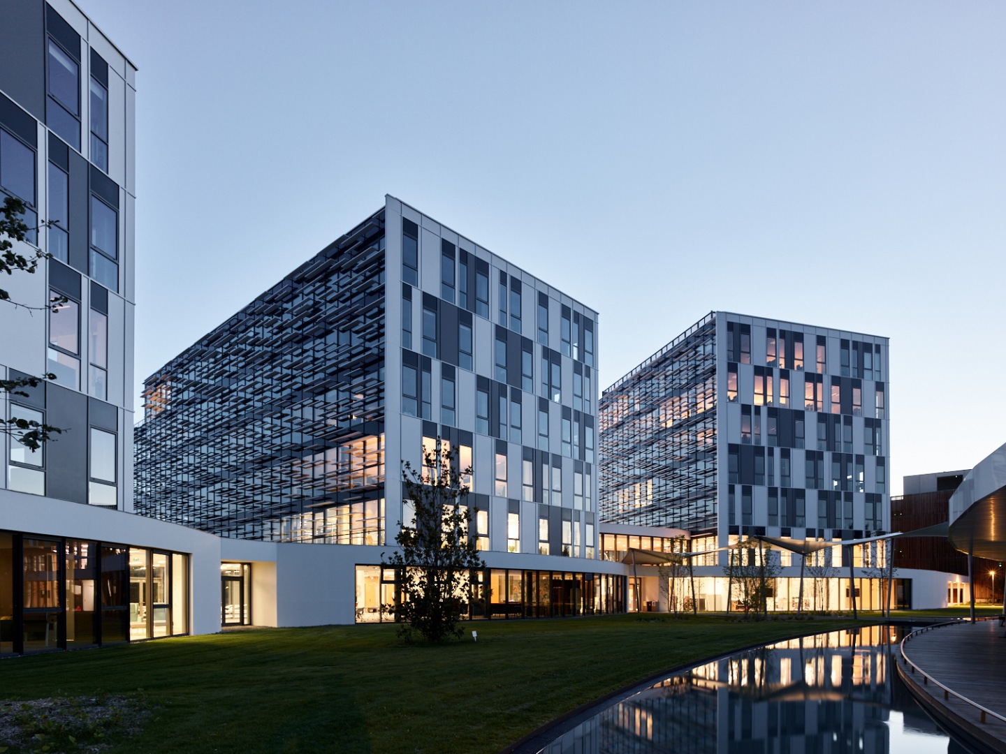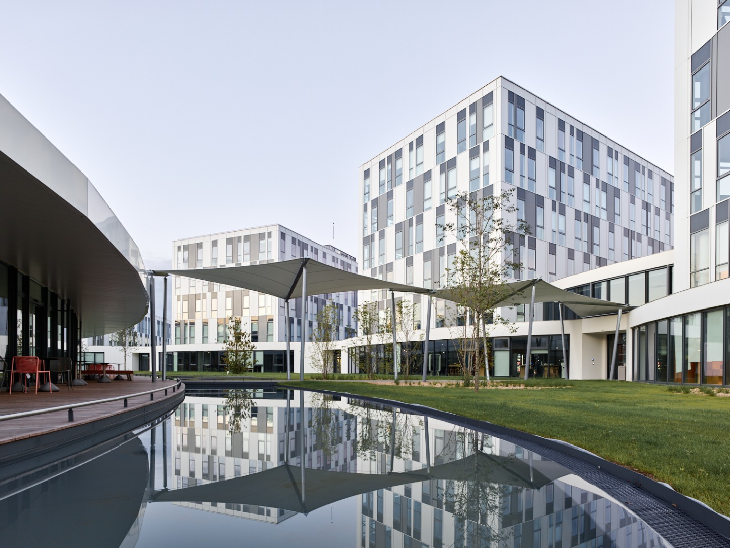 Construction du Campus ORANGE Tolosa à Balma (31) : bureaux, restaurant d'entreprise, parking silo de 646 places et 140 emplacements vélos.