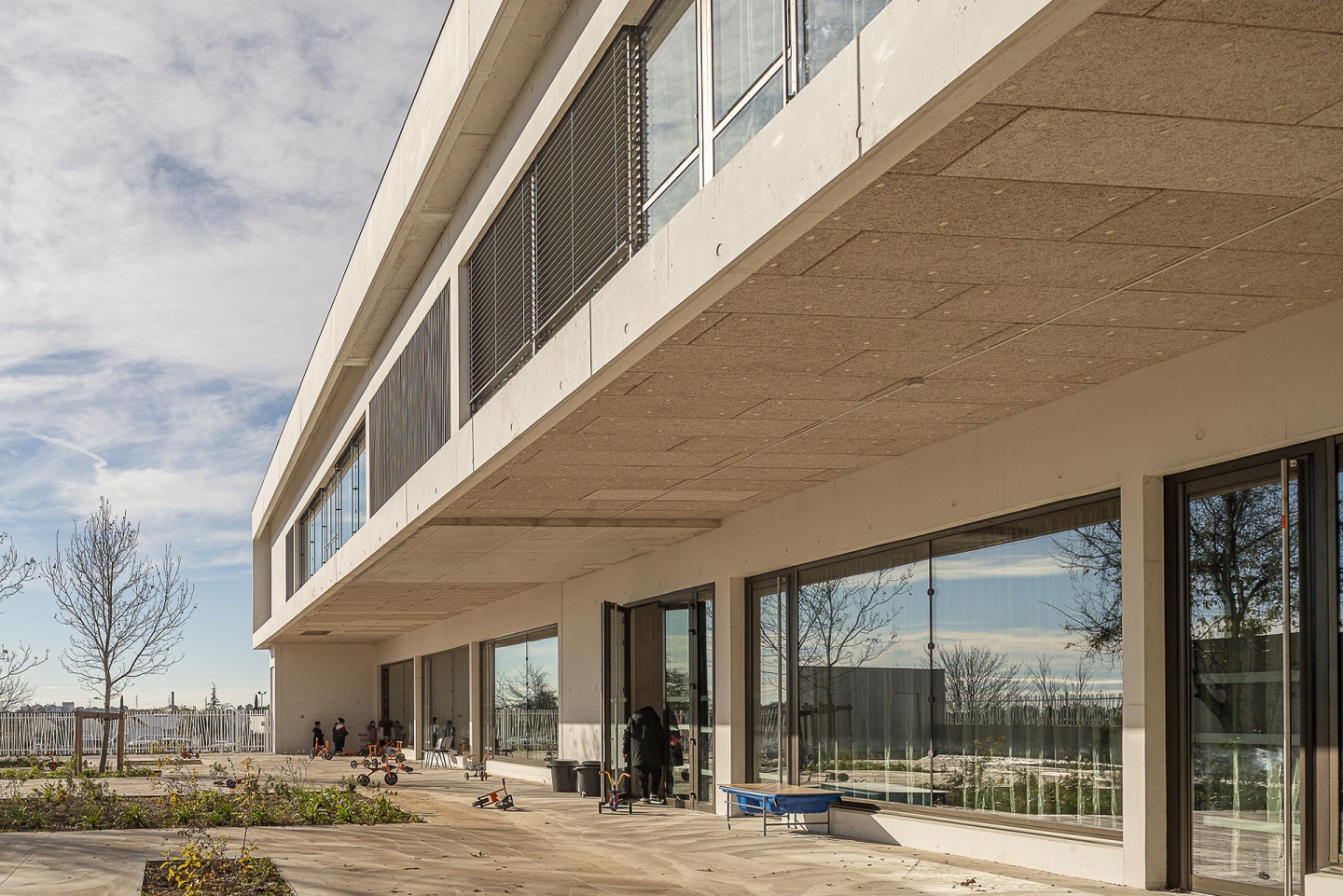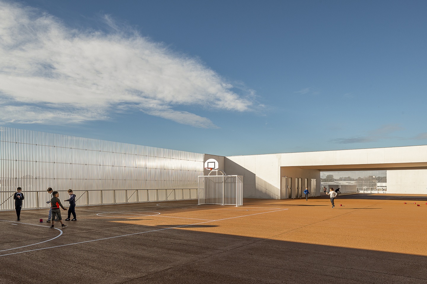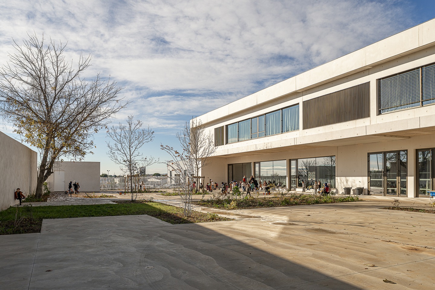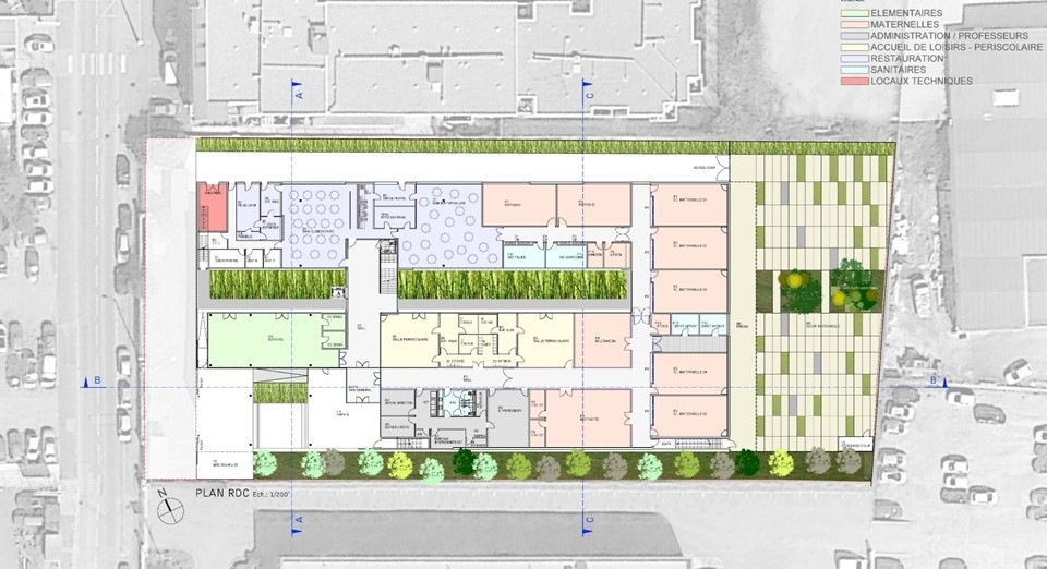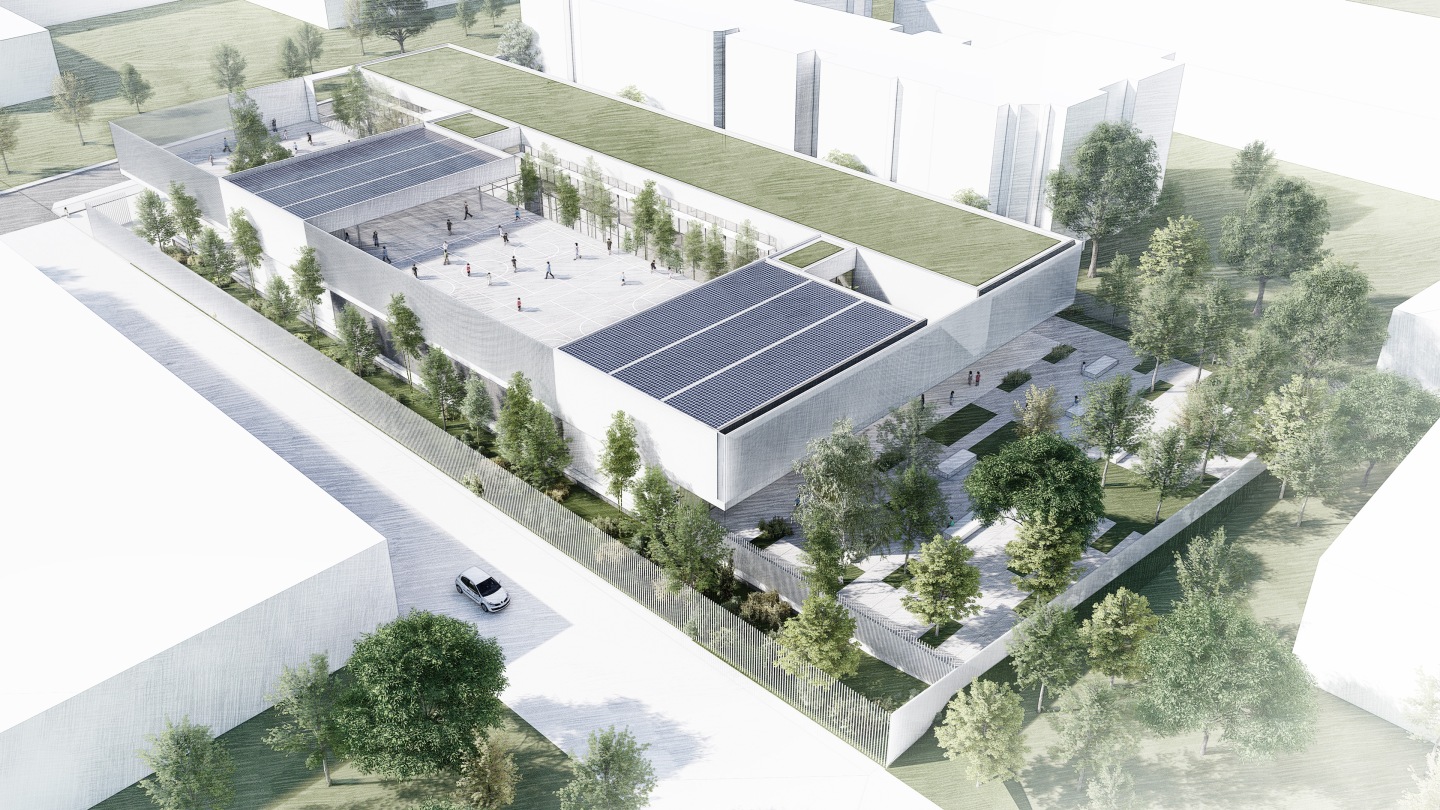 Construction d'un Groupe Scolaire BEPOS dans le quartier Restanque à Montpellier (34) composé de 15 classes élémentaires, locaux annexes (bureaux, salle multimédia, salle d’activité), 5 classes maternelles, locaux annexes (bureaux, dortoirs, salle de psychomotricité, salle multimédia), espace périscolaire : accueil de loisirs, restaurant scolaire et offices de restauration, espaces extérieurs.