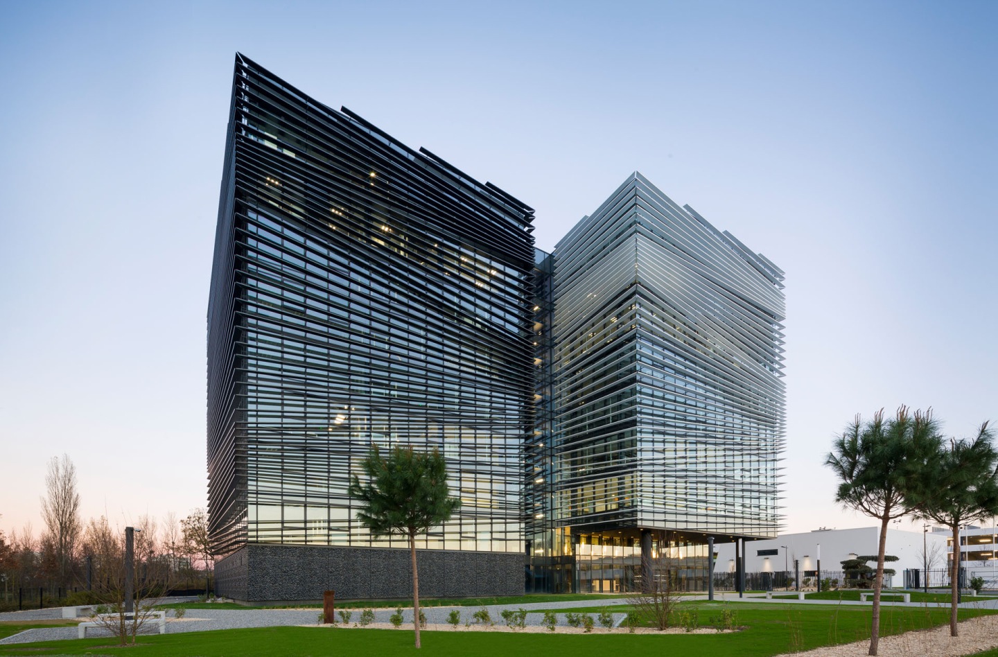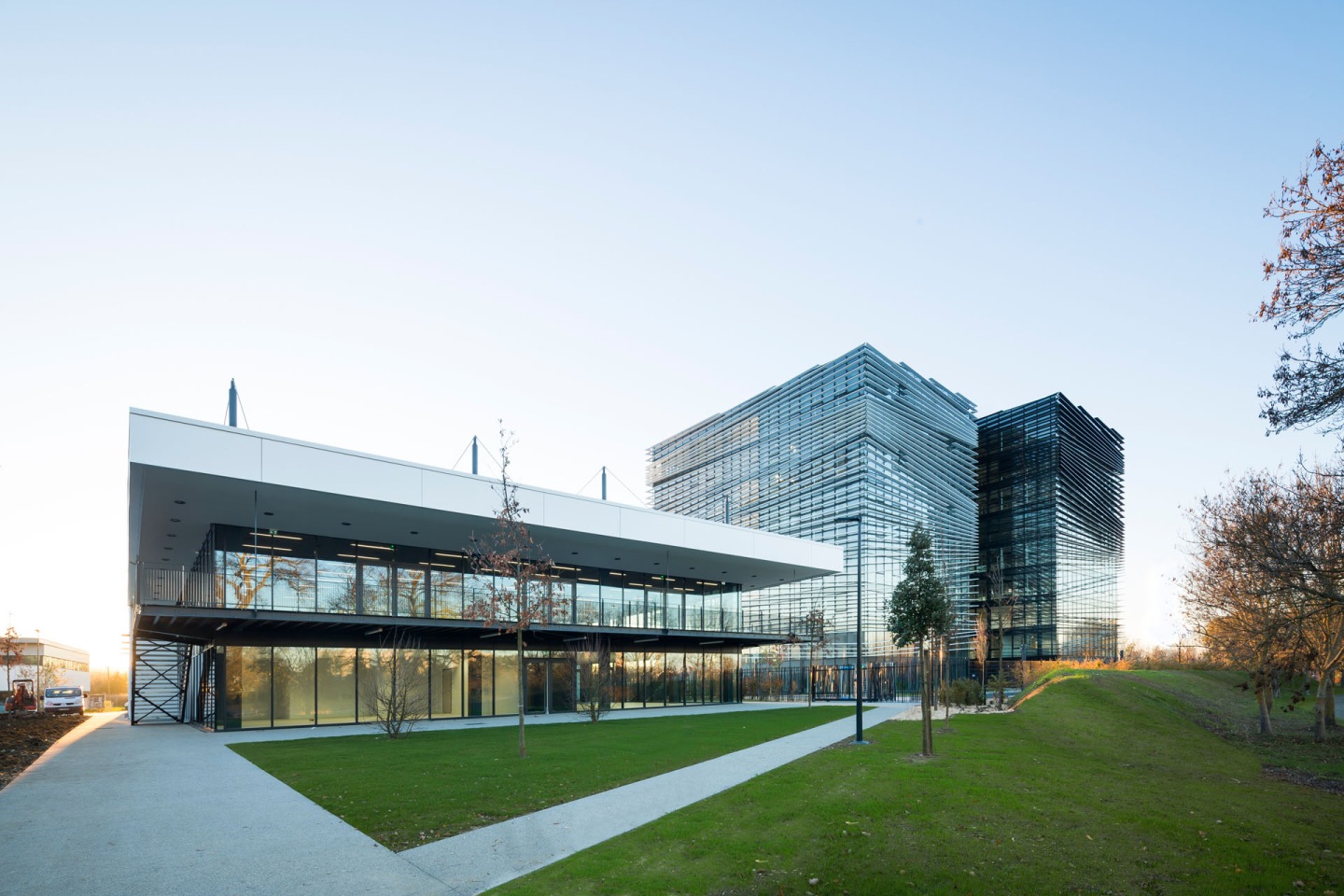 Construction d'un ensemble immobilier tertiaire (640 postes de travail), d'un restaurant d'entreprise (+ locaux sociaux et vestiaires salariés sportifs), d'un parking silo de 400 places (structure dimensionnée pour recevoir 3 niveaux supplémentaires) à Labège (31) - quartier Enova Labège-Toulouse - pour le compte du groupe industriel aéronautique THALÈS.