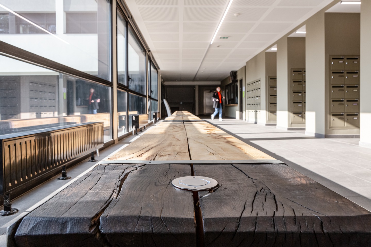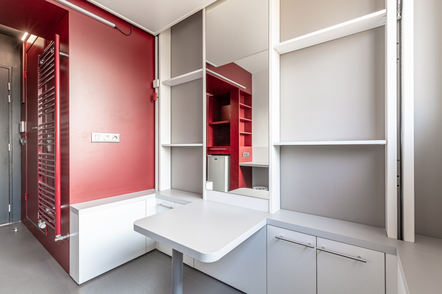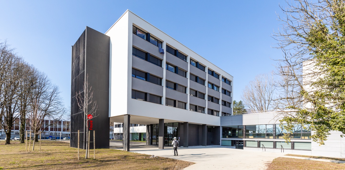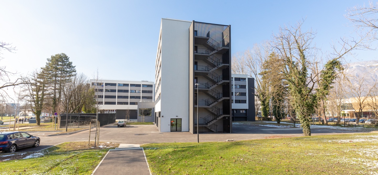 Rénovation des 300 logements de 10 m² de la Résidence universitaire (augmentation à 316 chambres). Les logements sont profondément modifiés afin d’offrir aux occupants des conditions de vie et de travail optimales dans une surface réduite. L'objectif est aussi de changer l’image de la résidence située en lisière du Campus de Saint-Martin-d’Hères (38). Le projet de réhabilitation répond aux objectifs de diminution de consommation par rapport à l’existant afin de respecter les dispositions et réglementations de la RT Rénovation.