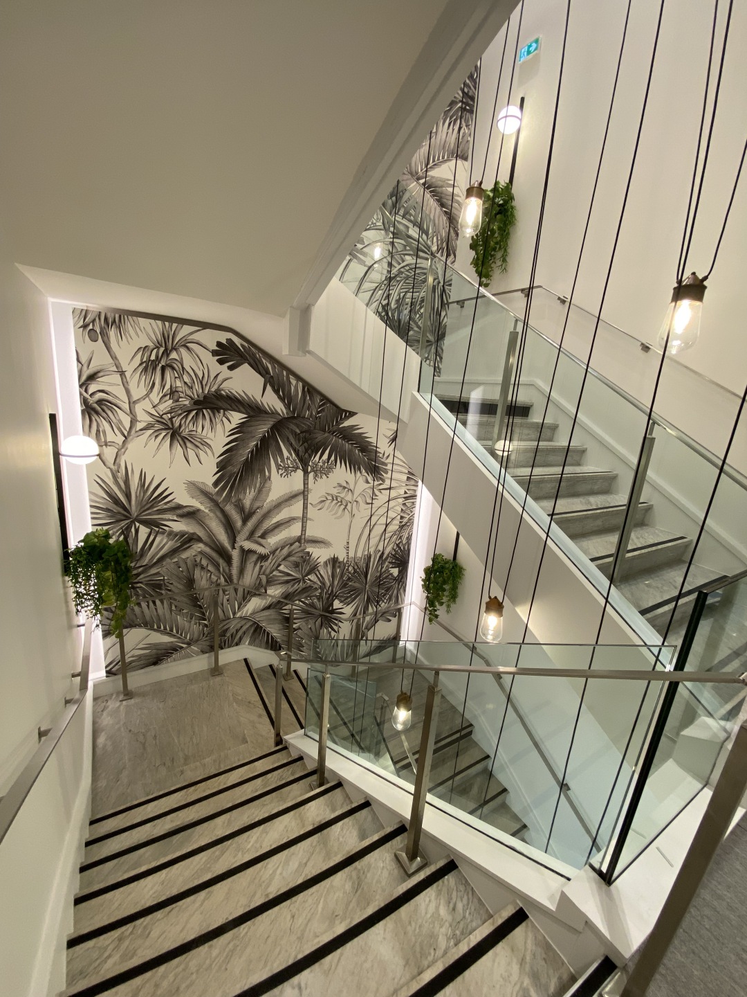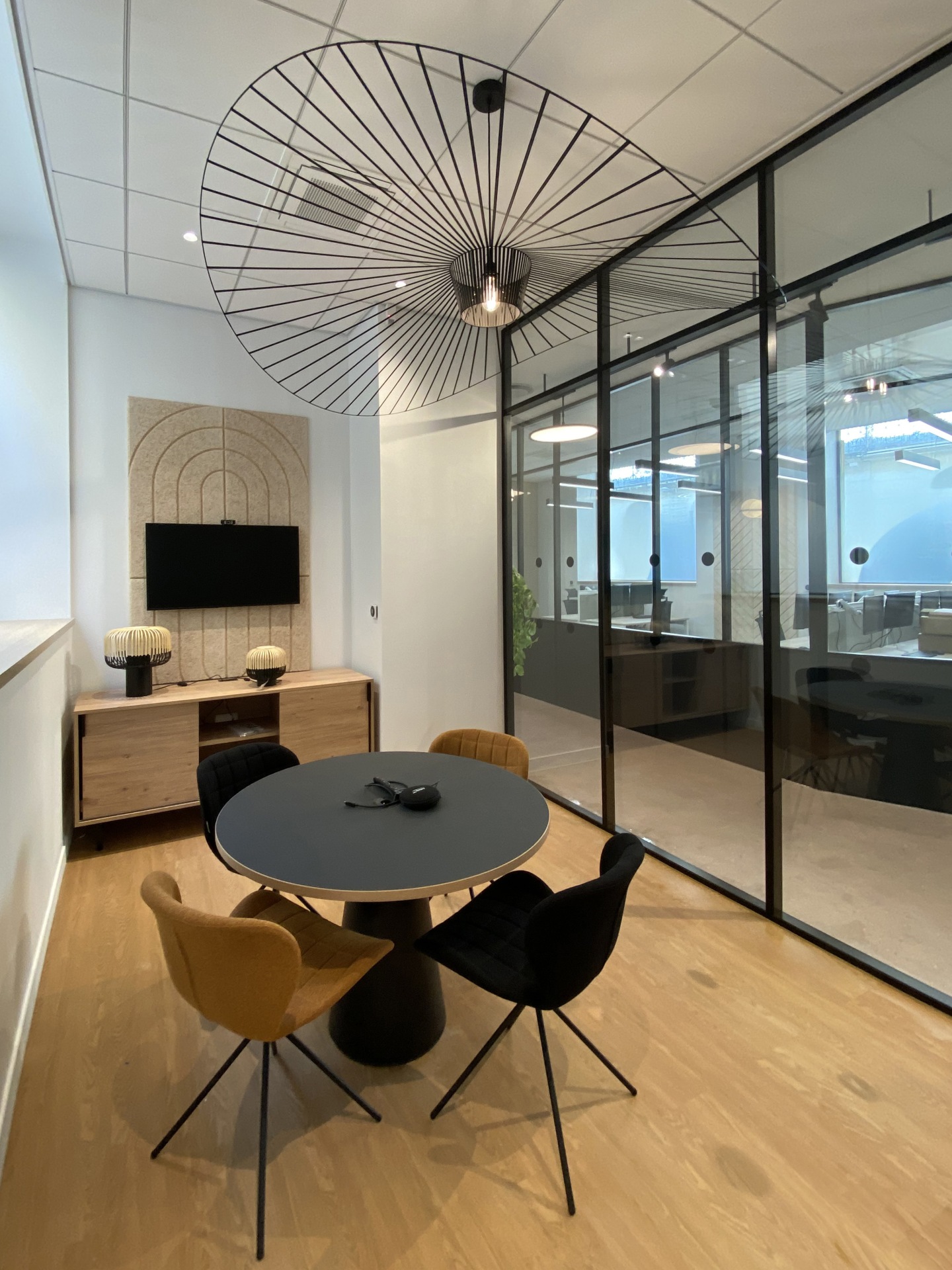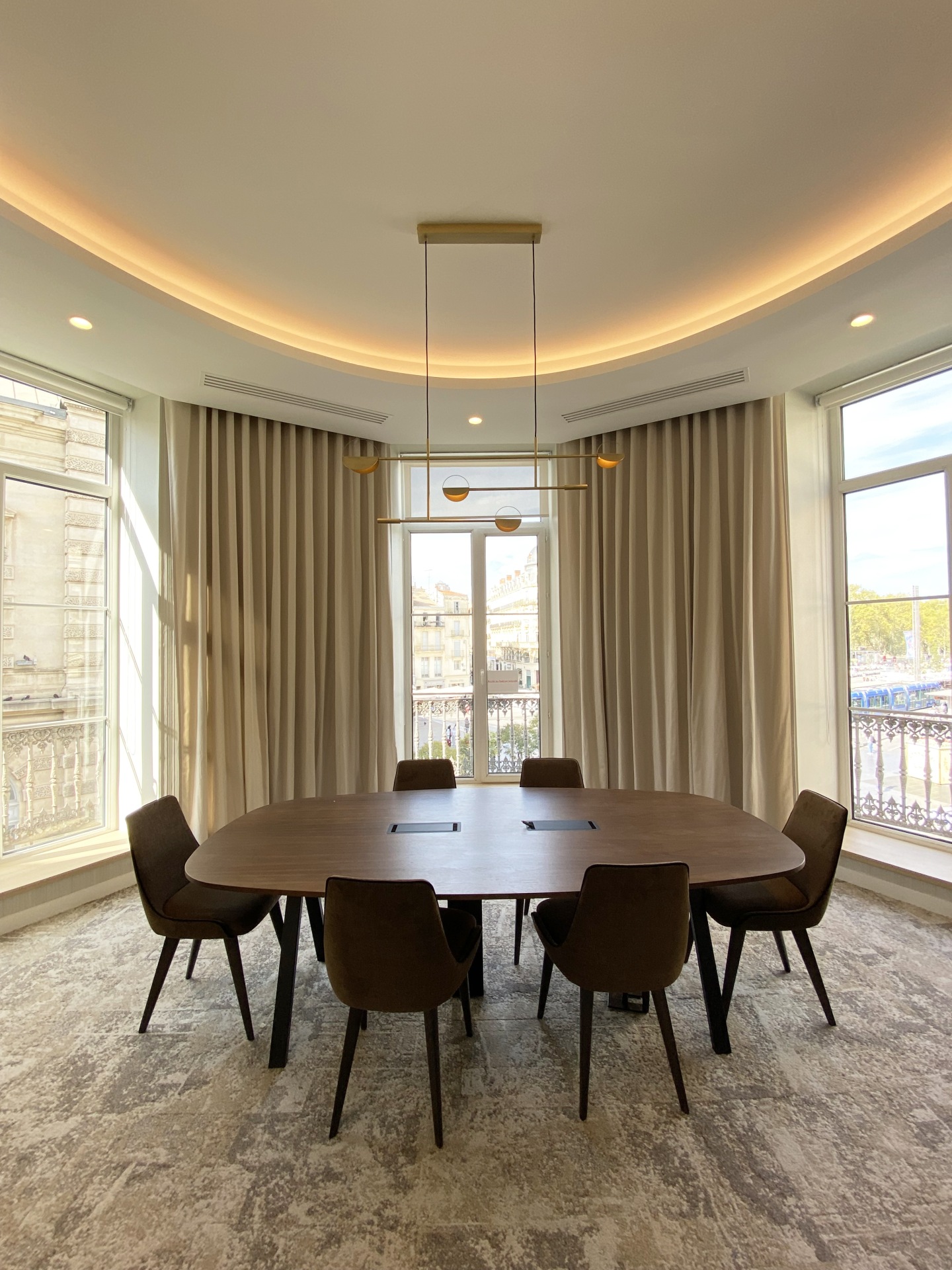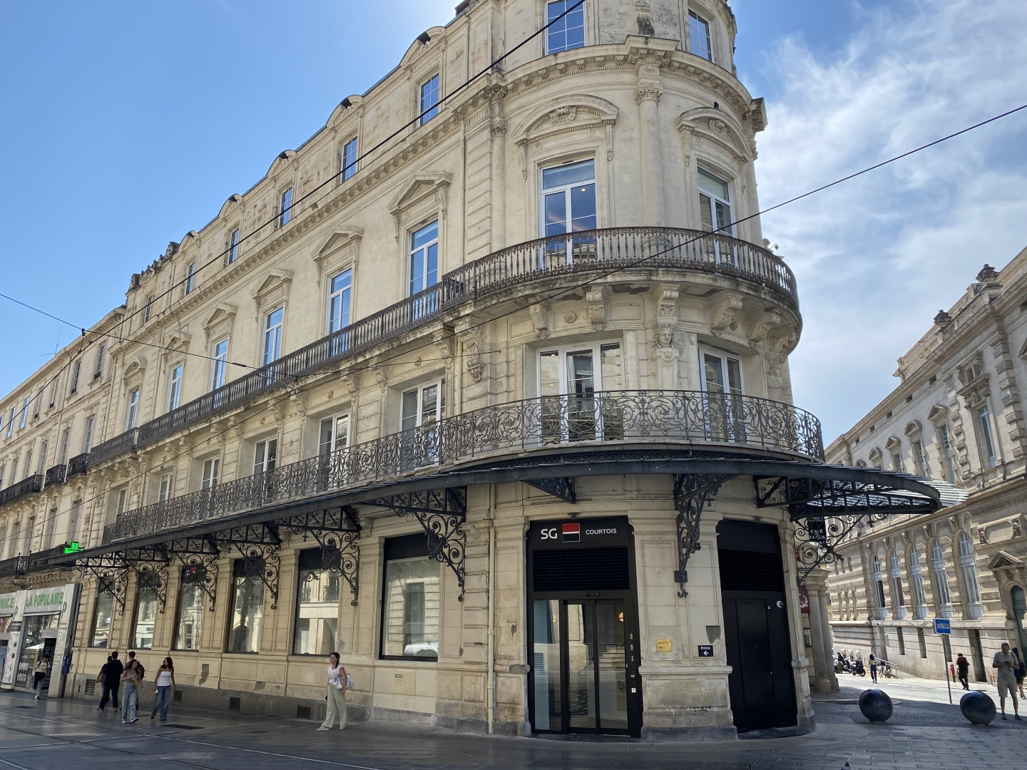 Rénovation intérieure complète de l'agence Société Générale Courtois Montpellier Comédie. Situé à l’angle de la rue Maguelone et du boulevard Victor Hugo, l’ancien café de la Rotonde était encore récemment occupé par la Société Marseillaise de Crédit. Cette belle adresse abrite aujourd’hui le Centre d’Affaires Régional SG Courtois et le Centre SG Private Banking.