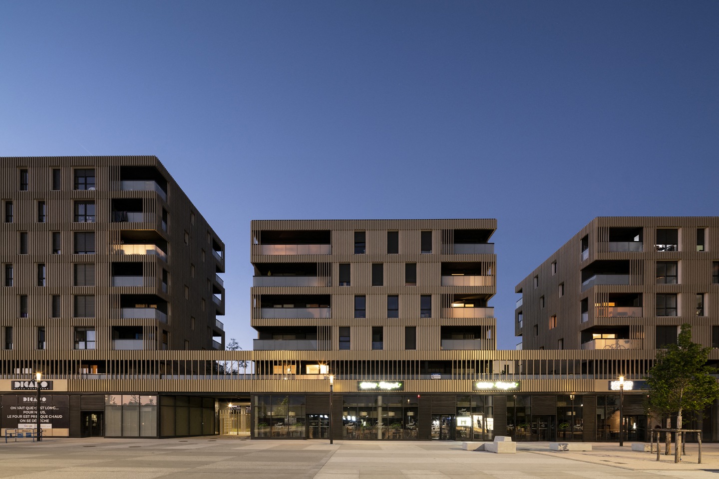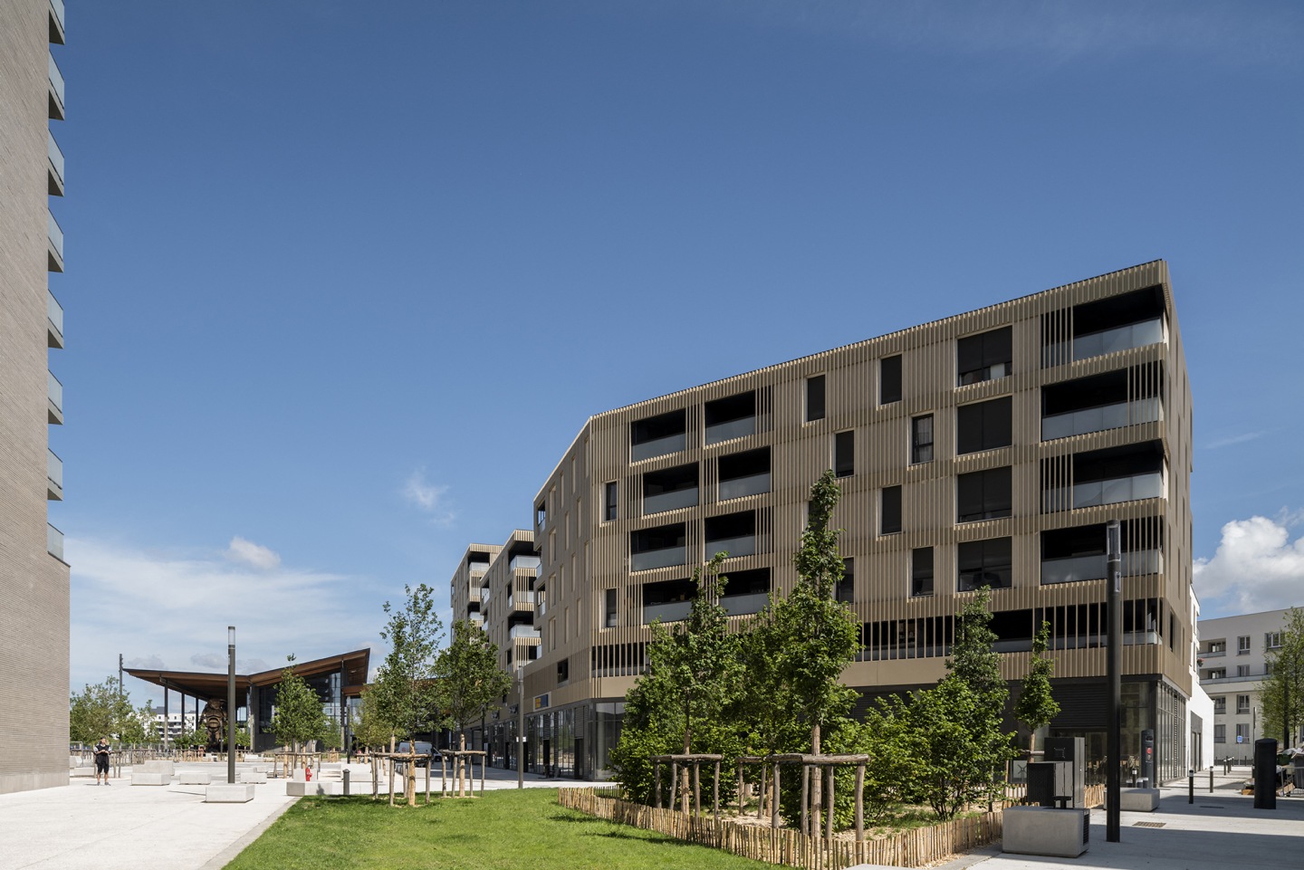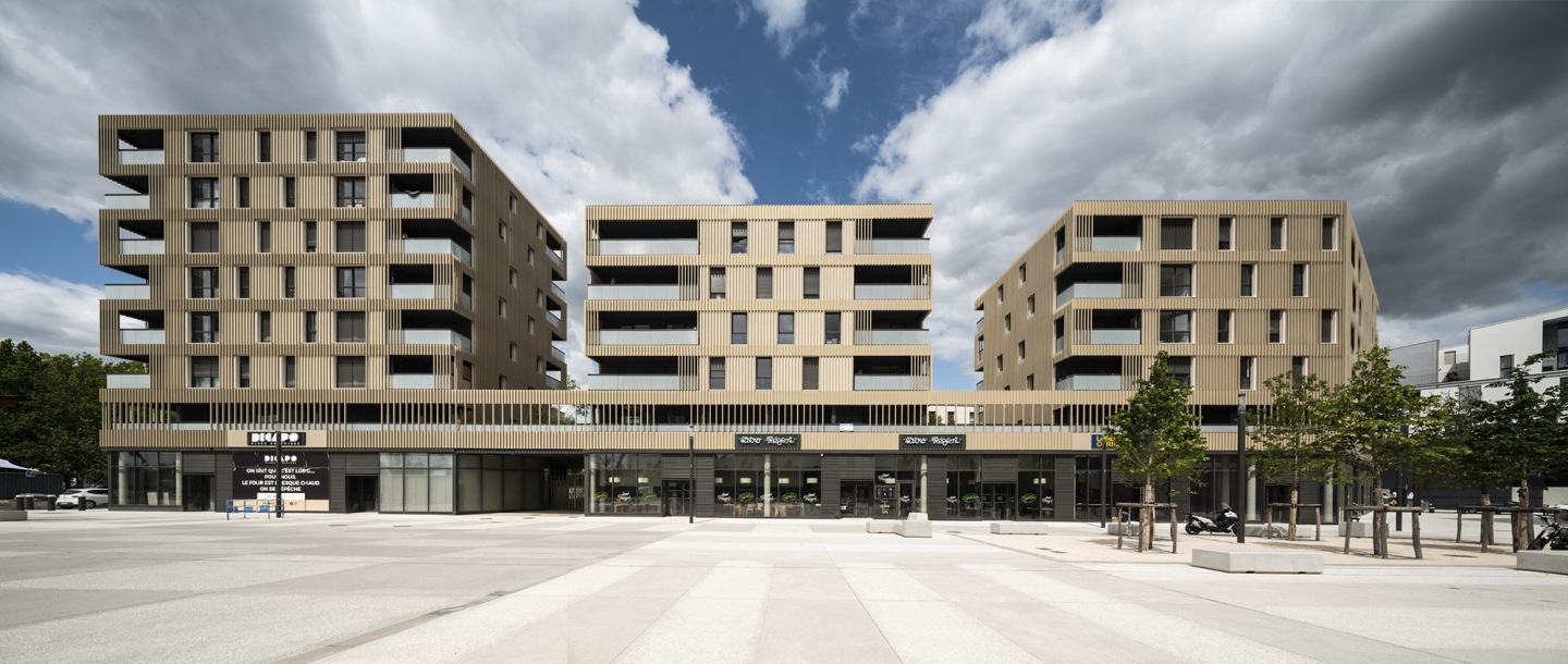 - 3 bâtiments de logements collectifs vers la place centrale : plot 01 en R+7, plot 02 en R+5 et plot 03en R+5 .